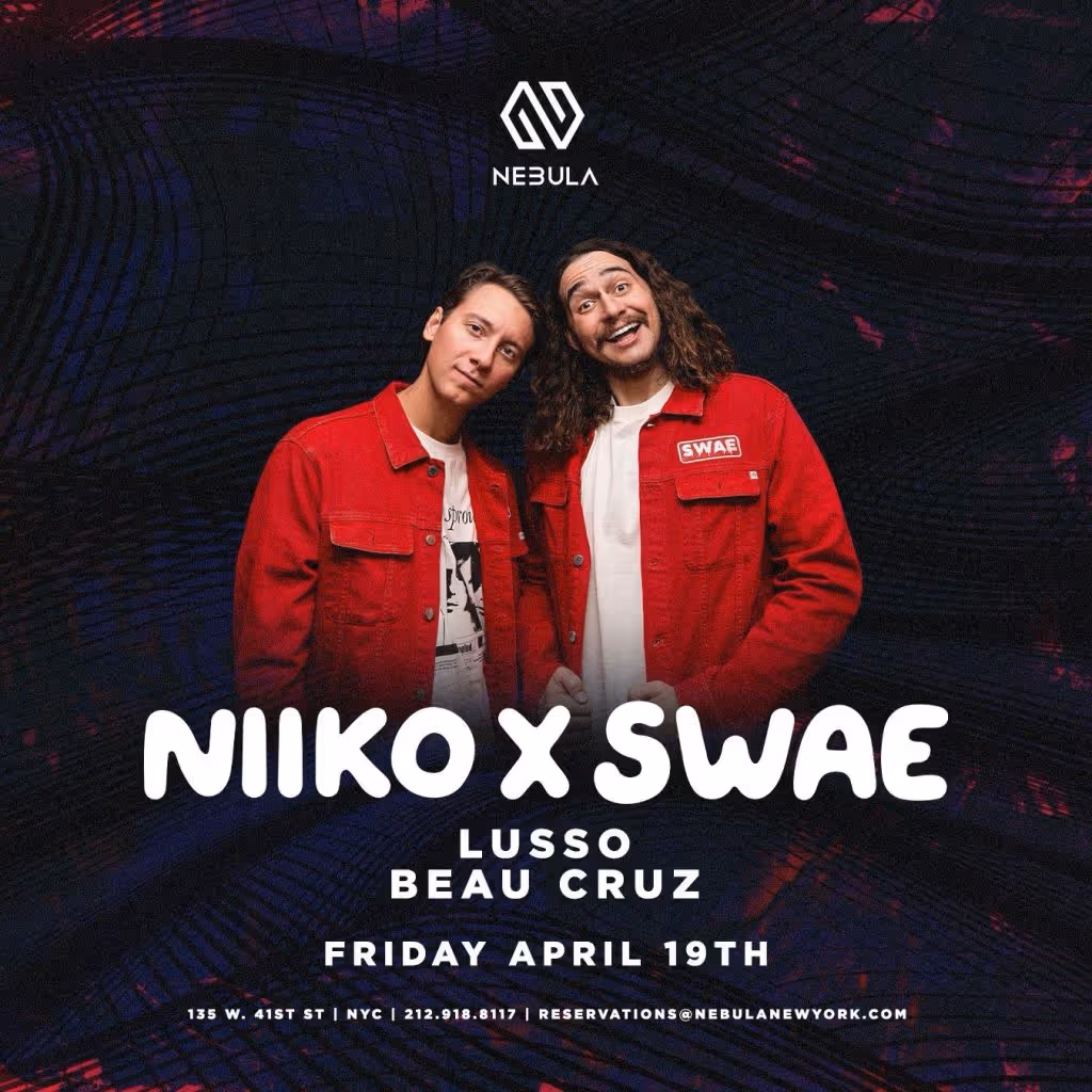 Hey, party people! Are you craving a night of non-stop beats and electrifying vibes? Well, mark your calendars because on April 19, 2024, Nebula, New York City's premier nightclub and event space, is bringing you the dynamic duo Niiko x SWAE for a night you won't soon forget. Located at 135 W 41st St, New York, NY 10036, Nebula is the epitome of nightlife extravagance, and this event is shaping up to be one for the books. Let's dive into why you absolutely can't miss out on this epic night.